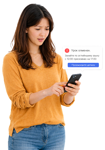 Любые изменения в расписании проходят без хаоса. Система сама уведомляет клиентов и сохраняет актуальное расписание для сотрудников и учеников.