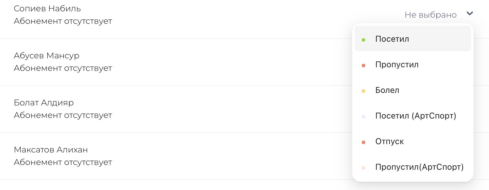 Система автоматически списывает уроки из абонемента, фиксирует пропуски и показывает остаток занятий и задолженности.